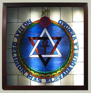 vitral del emblema en nuestra sede